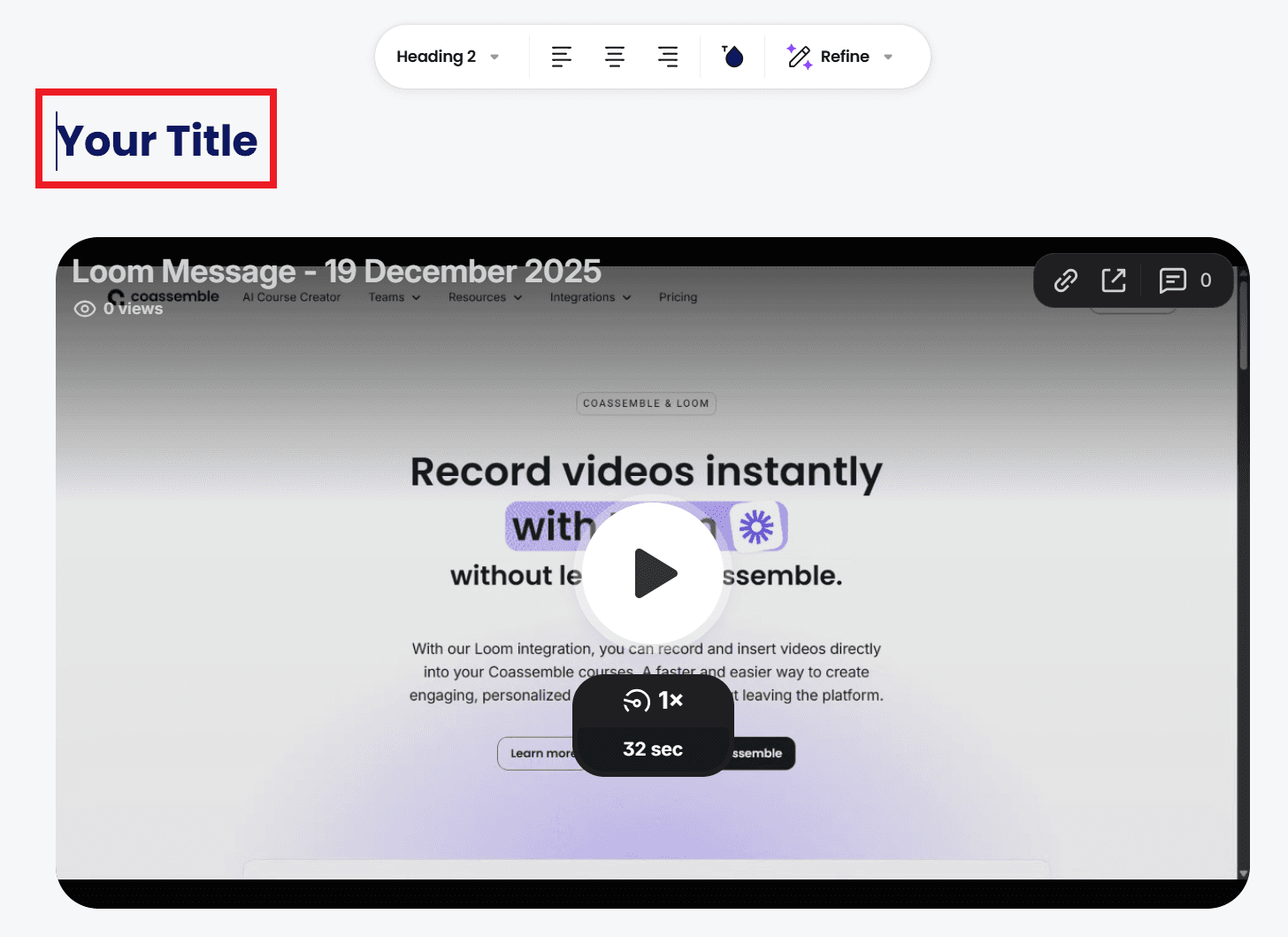 Yes. Loom videos can be recorded directly inside Coassemble and added to courses, making it easier to turn video explanations into structured, trackable training.
